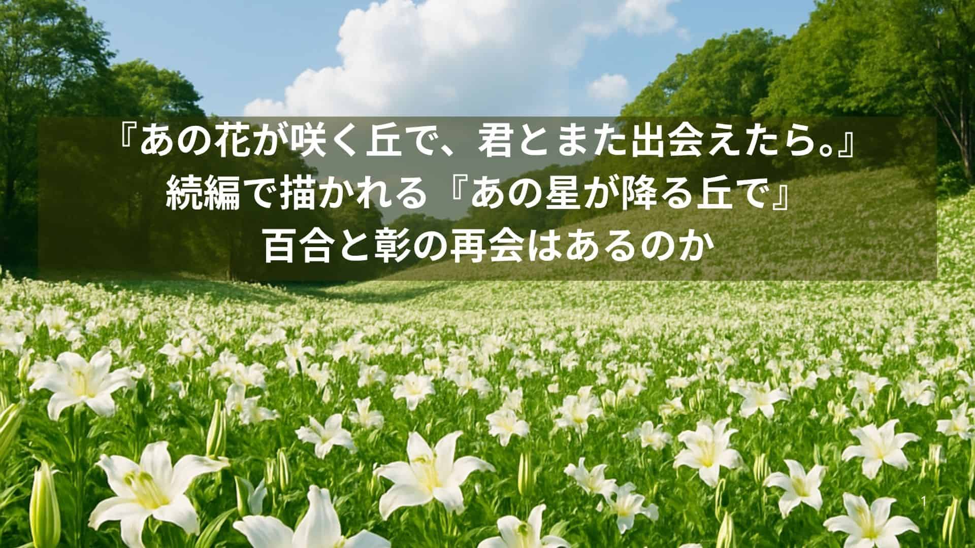 『あの花が咲く丘で、君とまた出会えたら。』続編で描かれる『あの星が降る丘で』の百合と彰の再会はあるのか