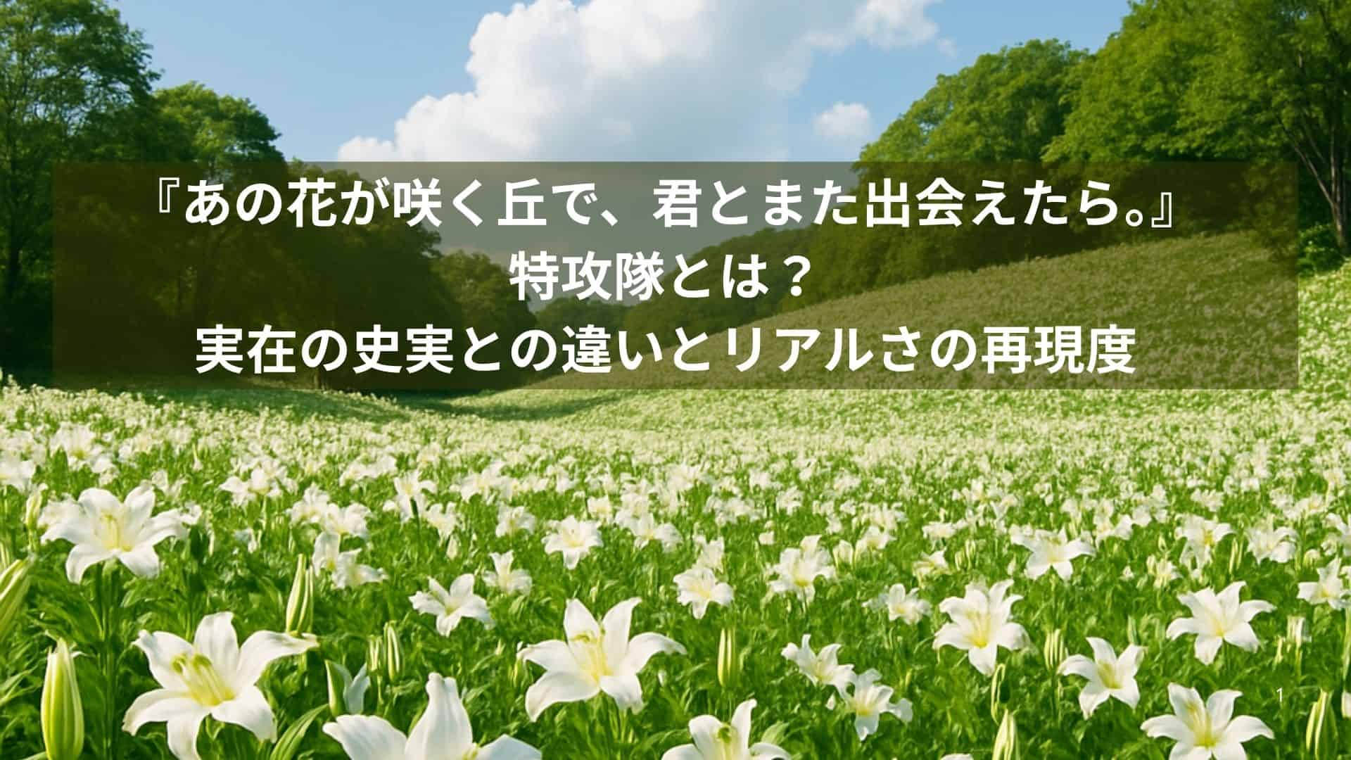 『あの花が咲く丘で、君とまた出会えたら。』は、フィクションでありながら、特攻隊という歴史的事実に真摯に向き合った作品です。