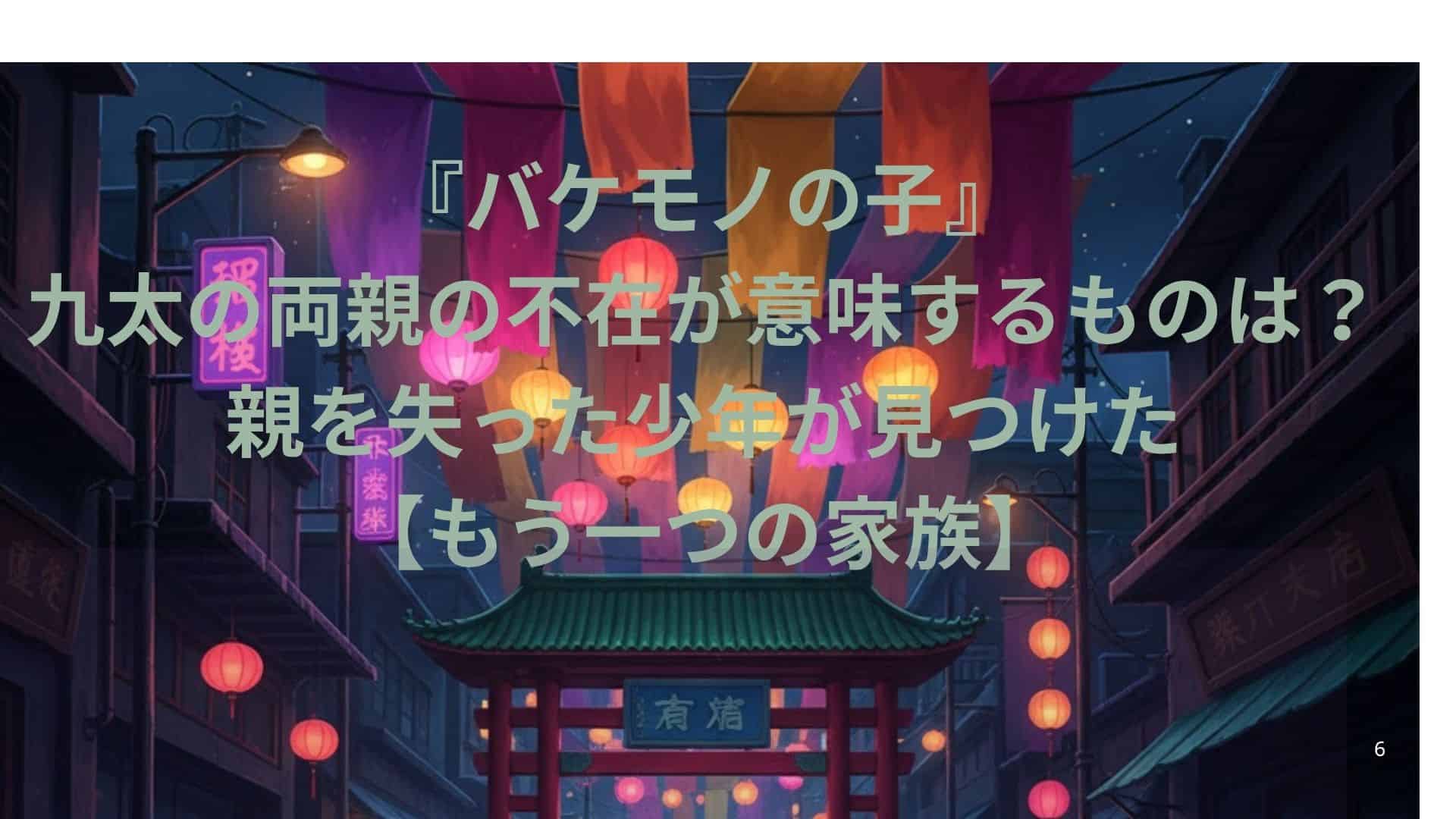 『バケモノの子』の九太にとって、両親の不在は「終わり」ではなく「始まり」でした。