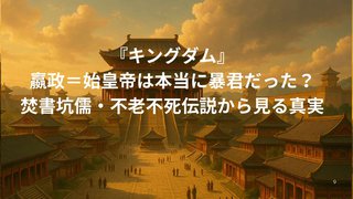 エンタメ『キングダム』の嬴政=始皇帝は本当に暴君だった?焚書坑儒・不老不死伝説から見る真実 『キングダム』の嬴政と史実の始皇帝は同一人物?『キングダム』に登場する嬴政(えいせい)は、実在の歴史人物「秦の始皇帝(しこうてい)」がモデルです。作中では中華統一を志す“理想の王”として描かれ、信や王騎らと共に戦乱の世を変えようとします。一... 2025.07.03エンタメキングダム