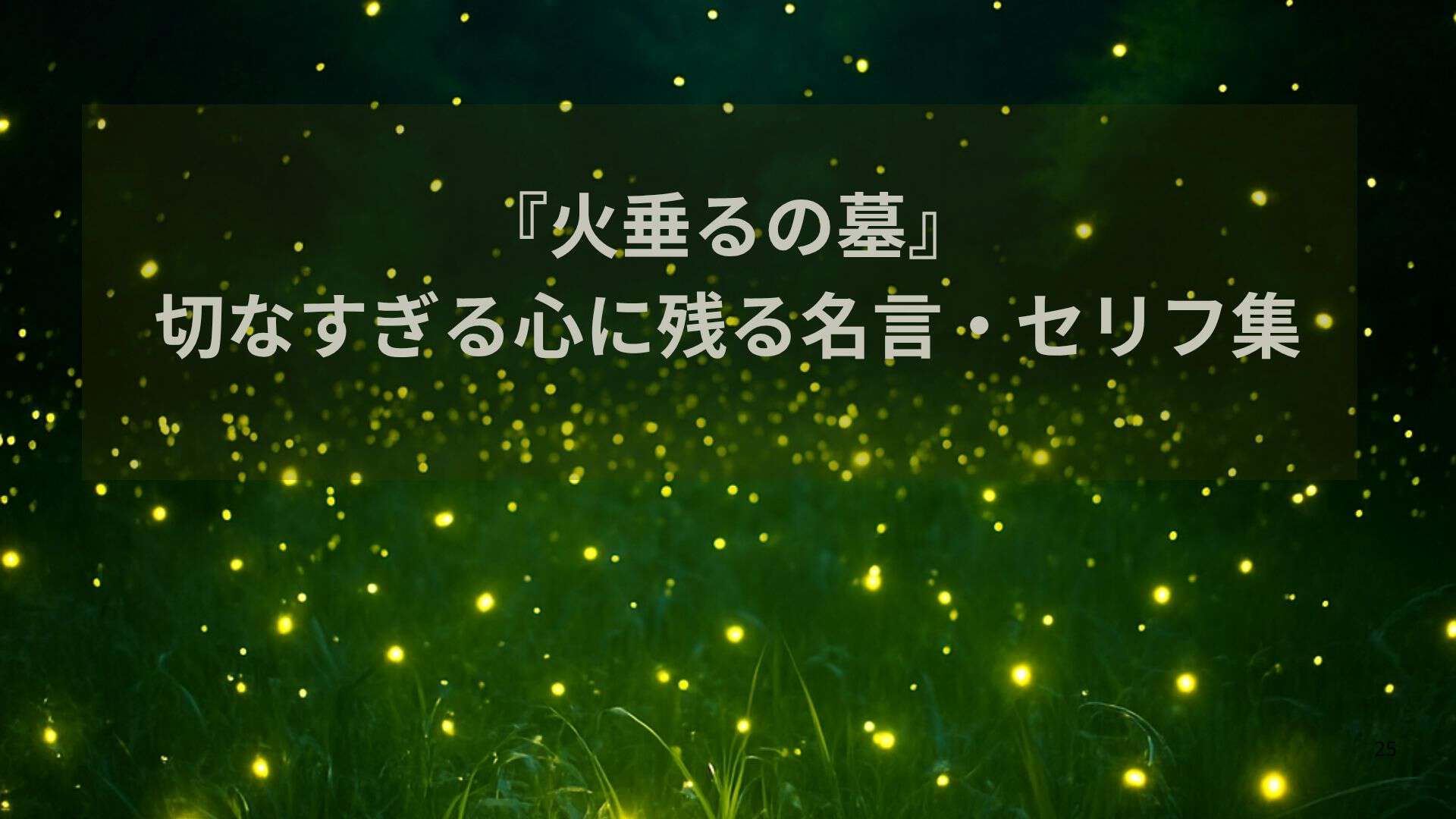 『火垂るの墓』には、このほかにも心を揺さぶる名セリフが多数登場します。どれもが戦争という極限状態の中で、人間の愛や優しさ、儚さを伝える力強い言葉ばかりです。