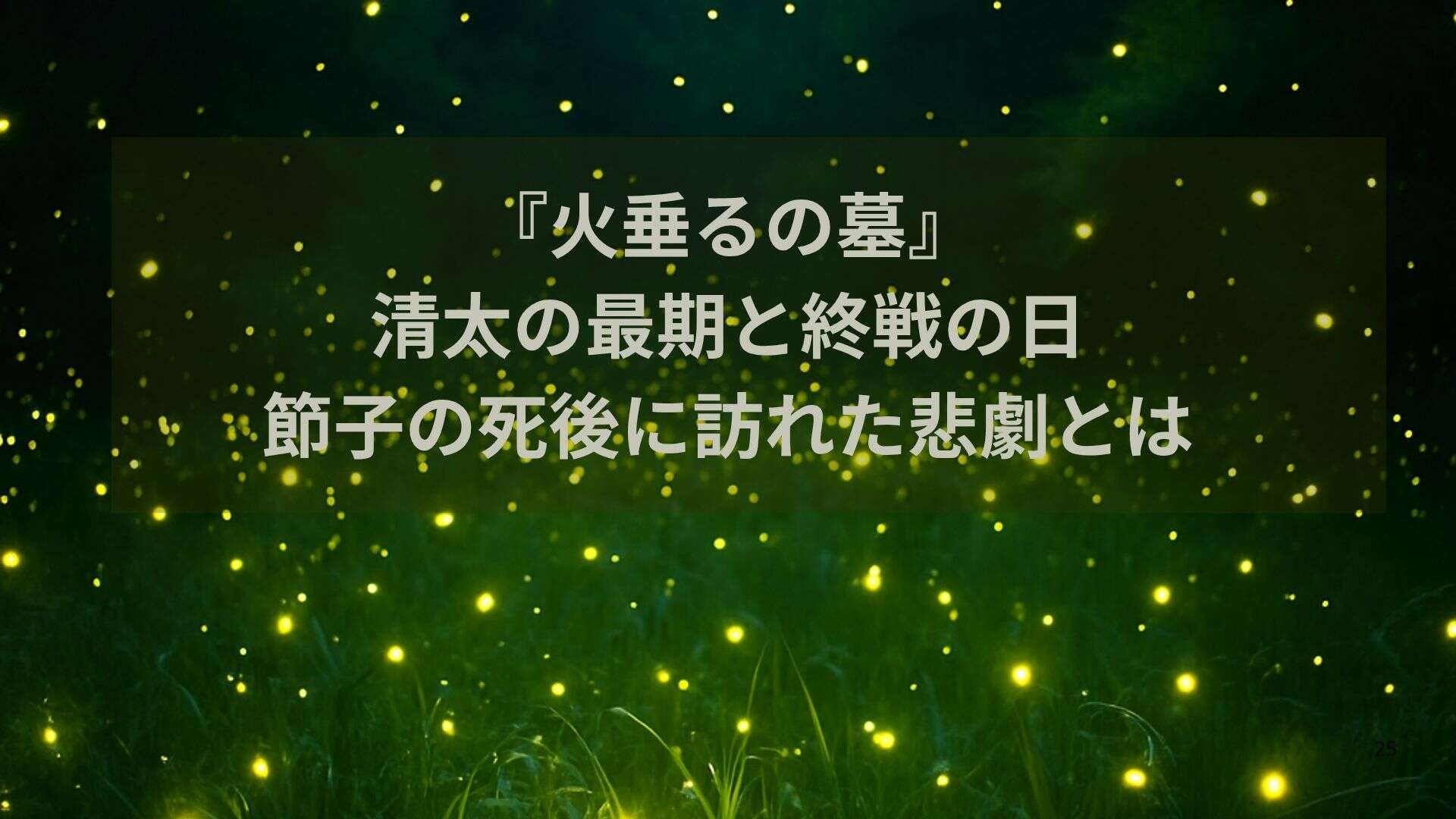 『火垂るの墓』は、ただの戦争映画ではありません。戦争が終わっても救われない命があること、そして「終戦=平和」ではないという現実を私たちに突きつけます。