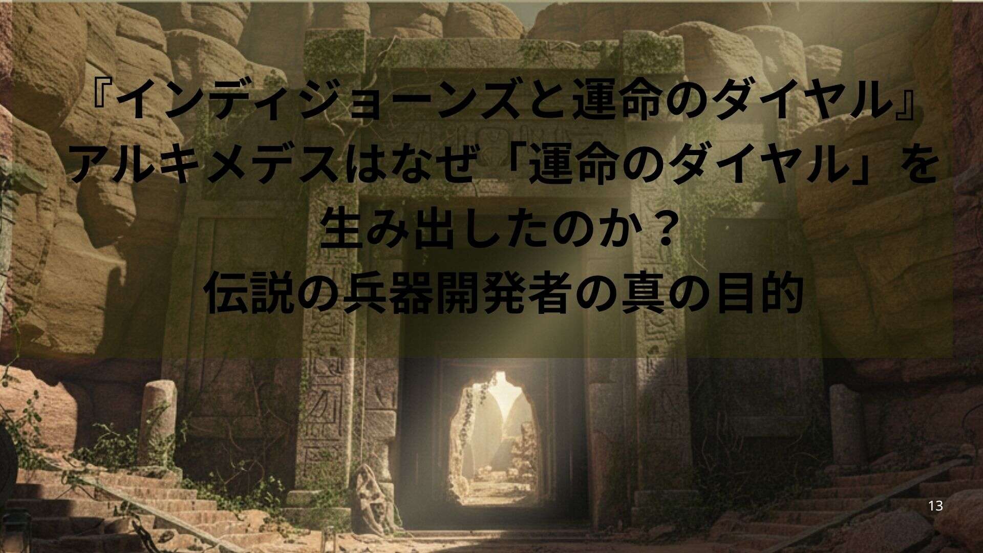 - 秩序への執着: 彼の数学的な天才は、宇宙の現象にも完璧な「秩序」と「計算」があると考えました。ダイヤルは、その秩序を読み解き、一瞬の「支点」を見つけることで、歴史の進む方向すらも動かそうとしたアルキメデス最後の挑戦だったのです。