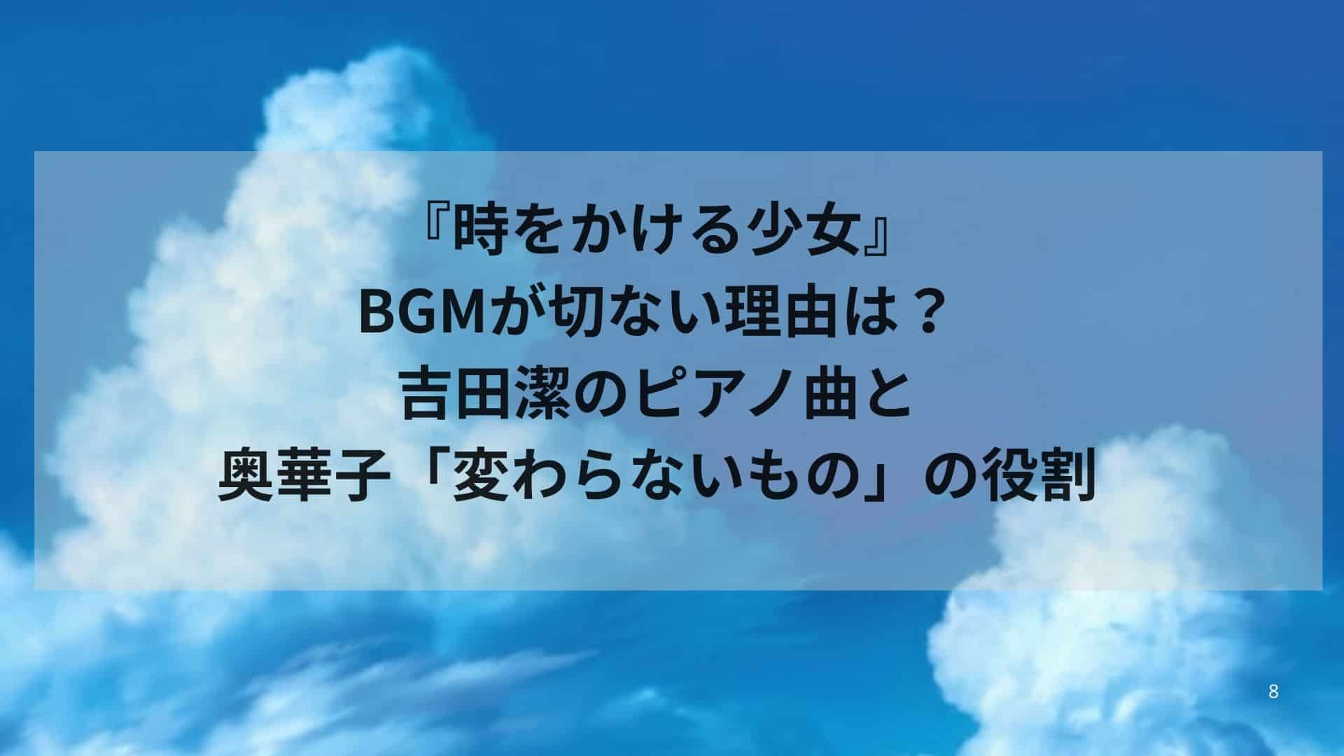 『時をかける少女』のBGMは、単なる背景音楽ではありません。