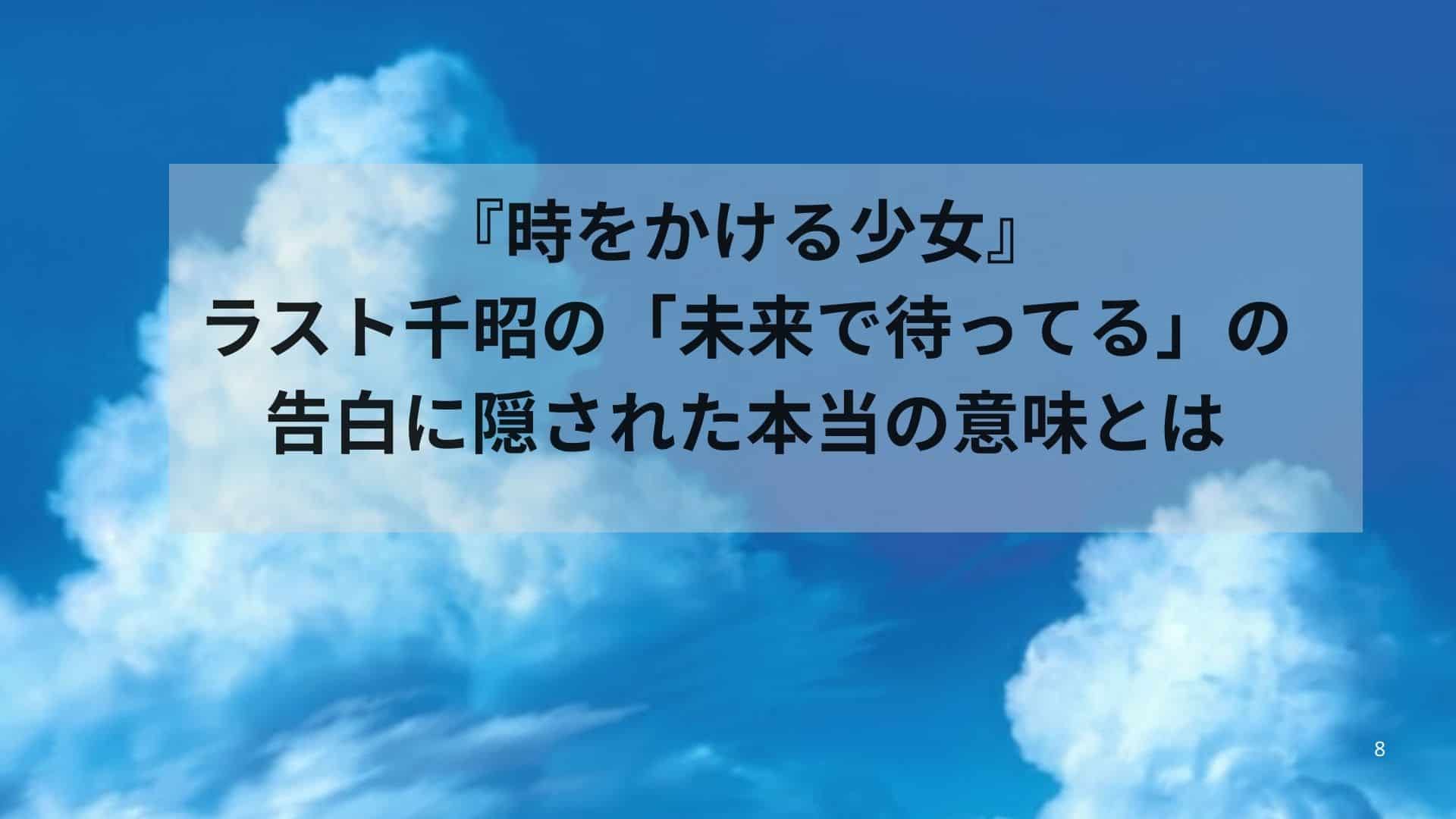 『時をかける少女』ラスト千昭の『未来で待ってる』の告白に隠された本当の意味とは