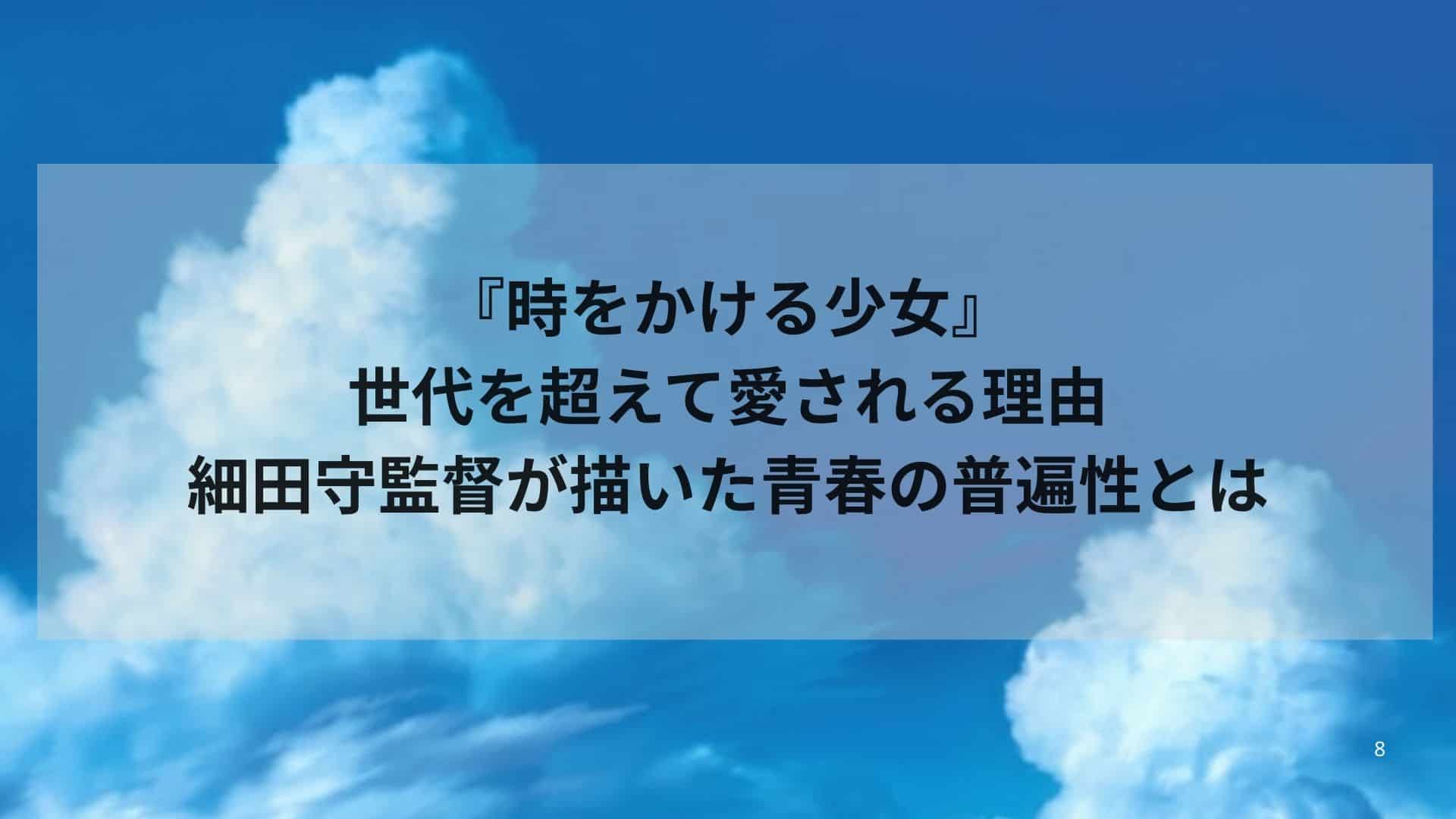 『時をかける少女』世代を超えて愛される理由。細田守監督が描いた青春の普遍性とは